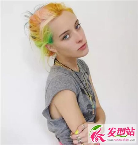 有種發(fā)型叫做“彩虹女孩”,當你還在糾結染哪一款單色發(fā)色的時候,人家已經把彩虹七色染發(fā)玩溜了,這樣的盤發(fā),遠看像彩虹糖,個性且甜美。