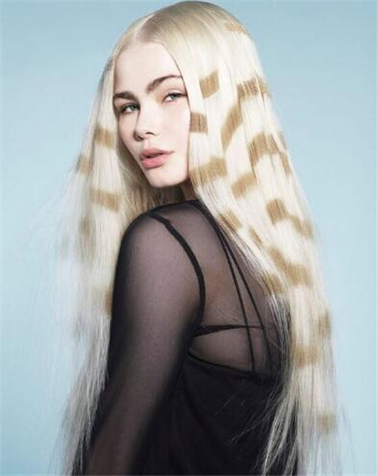 挑染的發(fā)色可以是明顯的色彩,也可以是一明一暗,制造鮮明光澤感。