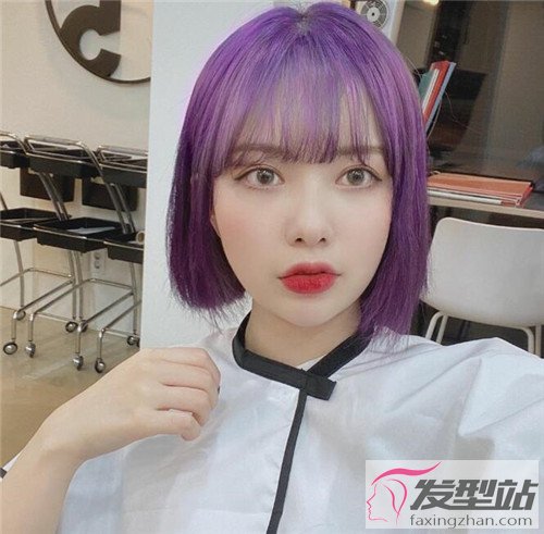 葡萄紫發(fā)色,屬于淺色系的一種,這樣的潮色染發(fā)是需要漂色的,搭配微翹波波頭,神秘大氣。