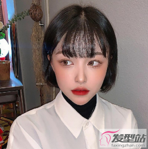 職場或乖乖女、好學(xué)生必備的人氣短發(fā),齊劉海內(nèi)扣波波頭,加上經(jīng)典黑的頭發(fā)顯得很乖巧懂事。