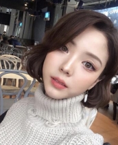 充滿誘惑力的一款短燙發(fā),斜分的長劉海很好的起到了修飾臉型的作用,再搭配飽滿蓬松的短燙發(fā),與棕栗色的發(fā)色,很襯膚白,整個人看起來女人味十足。