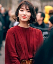 比較利落有型的一款半扎短發(fā),帥氣十足。斜分的薄劉海清爽大方,呈現(xiàn)出女生姣好的面容,搭配活力十足的半扎發(fā),整個造型更顯得飽滿有范!