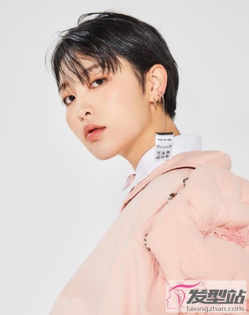 自然的黑發(fā)色露耳短發(fā),劉海三七分開,更顯率性,很有造型感,女生氣場全開。