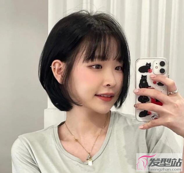 黑色的短發(fā)清純又甜美,頭發(fā)剪到下巴位置非常瘦臉不顯老,圓臉女生換上可愛(ài)都不行哦。