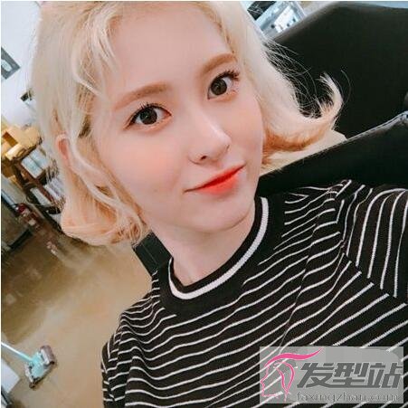 短發(fā)染成極淺金色也是很好看的,金色顏色很淺的時(shí)候看著就像透明一樣了,很夢(mèng)幻,稍微加個(gè)濾鏡就白的跟白雪公主一樣了,精靈感十足。短發(fā)染淺發(fā)色的妹子一定要會(huì)化妝才行,不然整體就顯得氣色很差。
