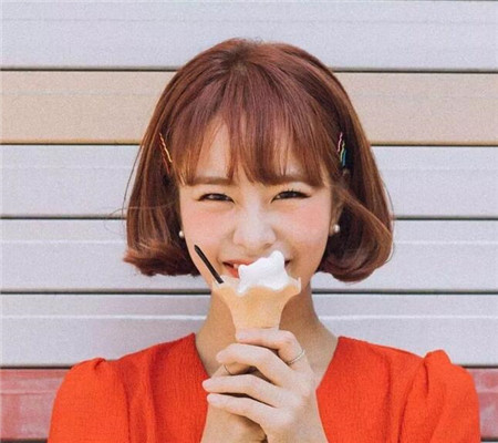 韓式經(jīng)典款學(xué)生發(fā)型,即內(nèi)扣短發(fā)波波頭。齊下巴的內(nèi)扣卷搭配亮棕色染發(fā),顯白更顯得可愛溫柔。