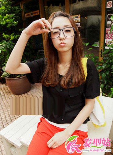 蘋果頭發(fā)型搭配嘟嘴表情和超大眼鏡框,萌味十足,令人眼前一亮。