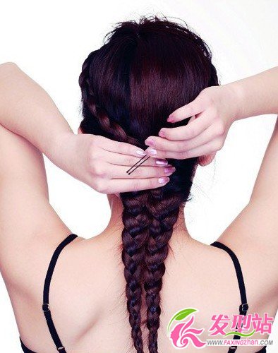 將兩個(gè)發(fā)尾合并在一起,是用小發(fā)卡固定住,并簡(jiǎn)單的整理一下頭發(fā)。