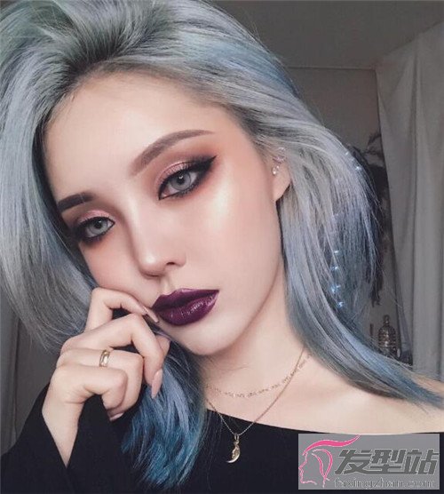 相比于輕熟女的妝容,這種清新系的妝容更甜美文藝,同樣是藍(lán)灰色系發(fā)色,這款更為亮眼減齡。