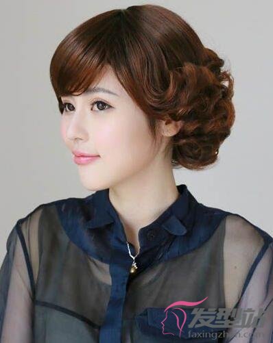中年女人斜分長劉海梳發(fā)齊肩短燙發(fā)