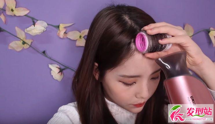 步驟一、使用發(fā)卷制造出劉海卷度,可搭配吹風(fēng)機定型