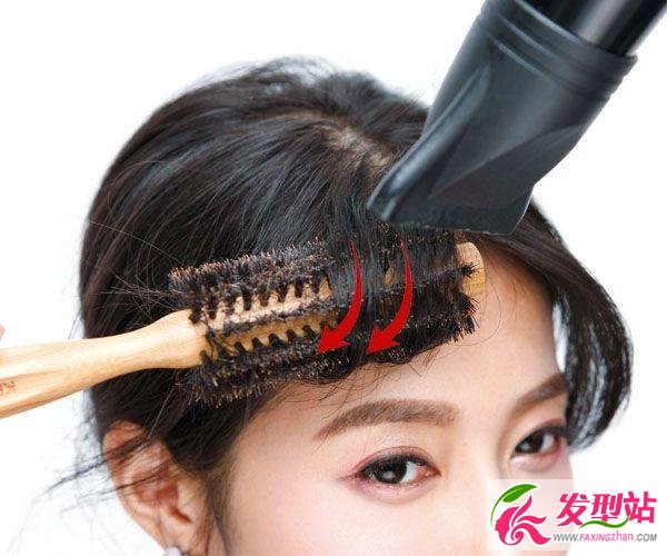 利用圓梳將劉海往前拉出自然弧度,并用吹風(fēng)機熱風(fēng)加熱,建議新手可以將吹風(fēng)機的風(fēng)量調(diào)小,吹整完畢后再轉(zhuǎn)至冷風(fēng)幫助頭發(fā)定型就完成了!