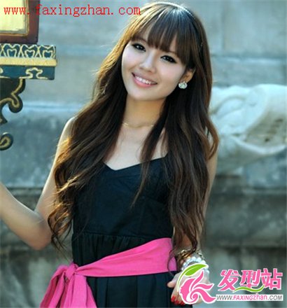 過寬的齊劉海凸顯出精致秀美的五官,下擺厚重的卷發(fā)效果散發(fā)著濃濃的女人味,很適合小臉MM的一款齊劉海卷發(fā)哦。
