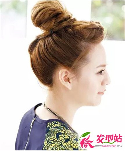 將腦后的頭發(fā)綁成馬尾后纏繞成花苞頭。