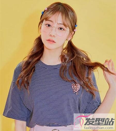 女生的頭發(fā)燙出卷度,雙扎成低馬尾,搭配八字劉海和眼鏡,怎么看都很有少女感,戴上發(fā)飾更甜。