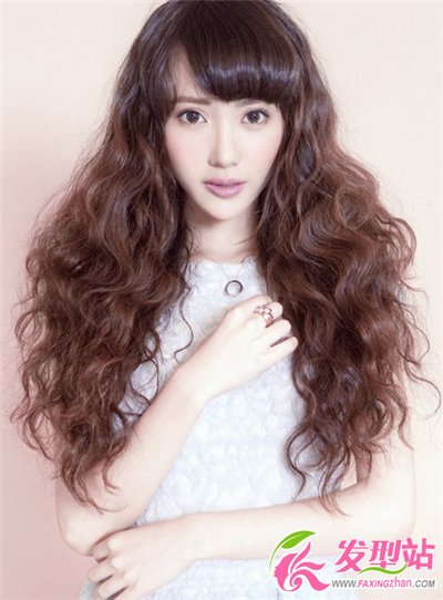 時(shí)尚迷人的斜劉海蓬松卷發(fā),一頭糖蜜棕色的洋娃娃卷發(fā),給人洋娃娃般精致可愛(ài)的感覺(jué),精致的五官配合一雙大眼睛,打造出可愛(ài)小女人感。