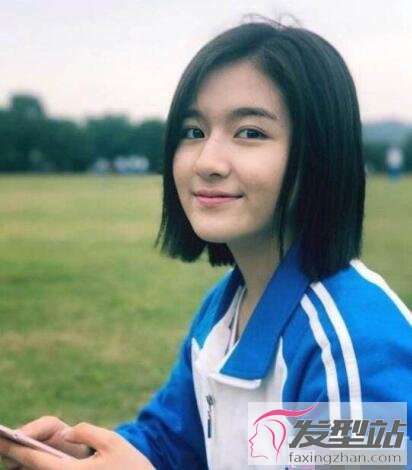 這款初戀系短發(fā)采用露額設(shè)計,比較適合額頭不高的女生,頭發(fā)打理得較為筆直,穿上校服,顯得清純無比。
