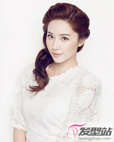 發(fā)尾燙出大弧度的卷曲,劉海別至頭上,呈現(xiàn)出立體的五官,氣質(zhì)端莊優(yōu)雅。