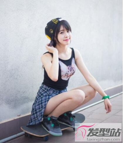 順直的頭發(fā)扎成低馬尾自然垂在身后,長劉海與偏分劉海的結(jié)合使得臉龐變得小巧玲瓏,反戴帽子彰顯了女生獨(dú)特活潑愛運(yùn)動的個性。