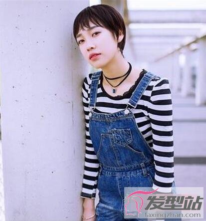 同樣是一款適合搭配背帶褲的短發(fā),短發(fā)燙出微卷的弧度,顯得時尚且俏皮,搭配輕薄的劉海,穿上背帶褲,極為小清新。