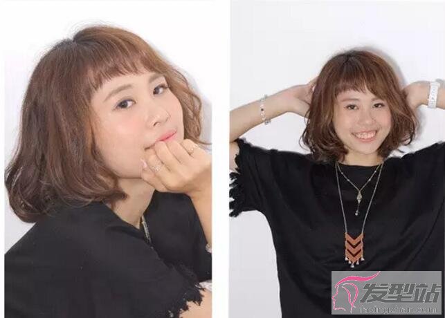 長及下巴的微卷蓬松波波頭有很好的修顏能力,讓MM的臉蛋變得更加小巧,而不對稱的劉海清新俏皮,突出MM的明亮大眼,巧妙轉(zhuǎn)移其他人的視線。