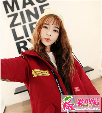 很別出心裁的一款玉米燙燙發(fā)發(fā)型設(shè)計,明亮的橘棕色染發(fā)顏色映襯得膚色吹彈可破,稀疏輕薄的齊劉海凸顯出女生甜美可人的氣質(zhì),戴上白色帽子,更是別具風情,也增添了小女生的青春活潑,惹人喜愛。