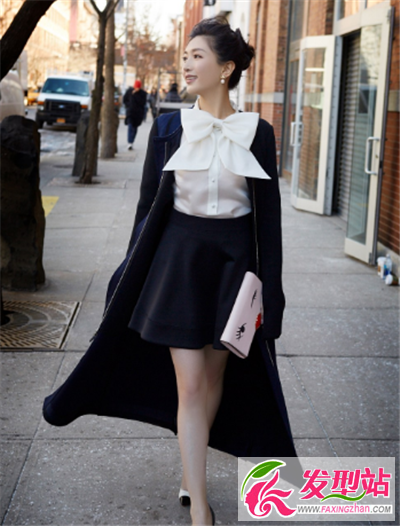 超甜美的一款丸子頭扎發(fā)設(shè)計,韓味十足,清爽的露額設(shè)計,展露出江疏影完美的小V臉,再搭配深栗色的發(fā)色,顯白靚膚,穿搭一身剪裁別致的黑裙,更是彰顯出女神范。