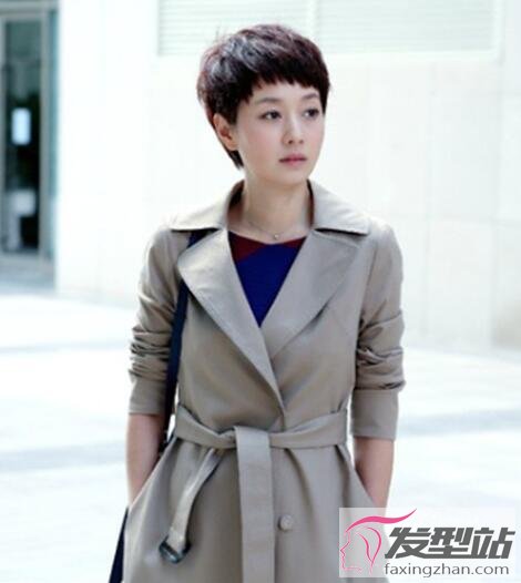 想要打造干練發(fā)型,自然要把短發(fā)剪得短一些,發(fā)尾是輕薄的剪裁,碎發(fā)劉海讓額頭不突兀,打造出職場女強人。