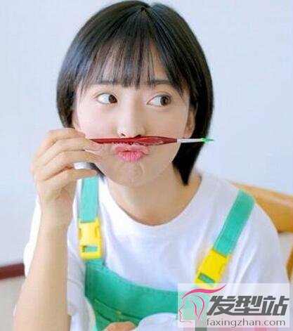 中長發(fā)打薄再燙直,顯得格外時(shí)尚,無需太多裝飾,簡約就是美,女生的臉型本就完美,搭配背帶褲,很有初戀的甜美感覺。