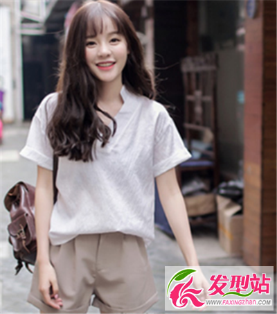 超養(yǎng)眼的一款時尚燙發(fā),齊劉海輕薄稀疏,勾勒出女生精致的小V臉,再搭配柔順瑩潤的長燙發(fā),極具光澤,整個人充滿清新范,非常搶鏡。