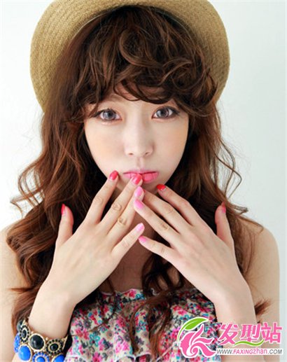 靈動感的劉海燙發(fā)是這款長卷發(fā)的特色所在,自然韓式卷翹齊劉海遮住額頭,盡顯清新俏皮的個性,棕色的披肩發(fā)戴上編織帽,化身田園小甜心。