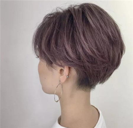 后腦頗有層次的紋理發(fā)絲有修顏?zhàn)饔茫跎l(fā)色短發(fā)讓妹子清爽甜美不失個(gè)性。