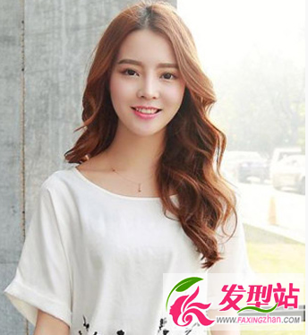 非常干凈優(yōu)雅的一款中分露額美發(fā)造型,搭配上明亮時尚的橘黃色染發(fā)和長卷發(fā)弧度,盡顯淑女風范。