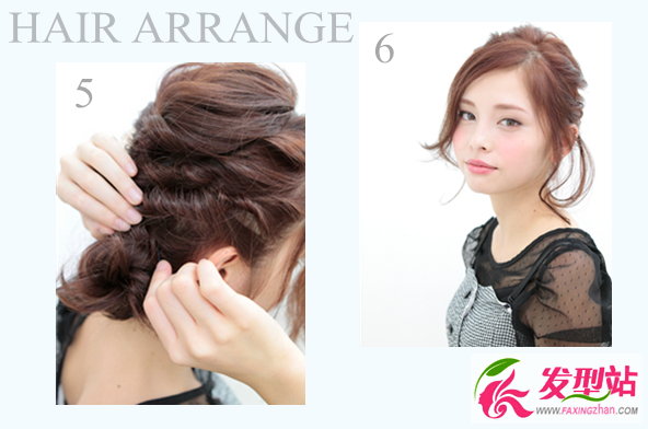 5、剩下的頭發(fā)不多就可以盤成一個(gè)發(fā)髻;6、劉海燙卷制造空氣感即可。