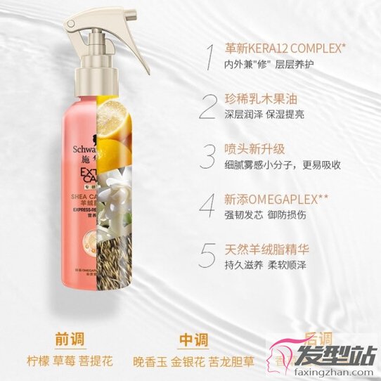 使用方法很簡單,只需要打開噴頭底下的開關(guān),充分搖勻,將上下兩層混合均勻,往干枯毛糙的發(fā)尾噴一噴,就可以馬上撫平毛躁的發(fā)絲,而且是免洗的喔,對于經(jīng)常在外出差,想要隨時隨地整理發(fā)型的女孩兒來說不要太方便喔。