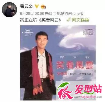 再看看曹云金今天的微博,他只發(fā)了一條,而且還只是分享一首歌,名叫《笑看風(fēng)云》