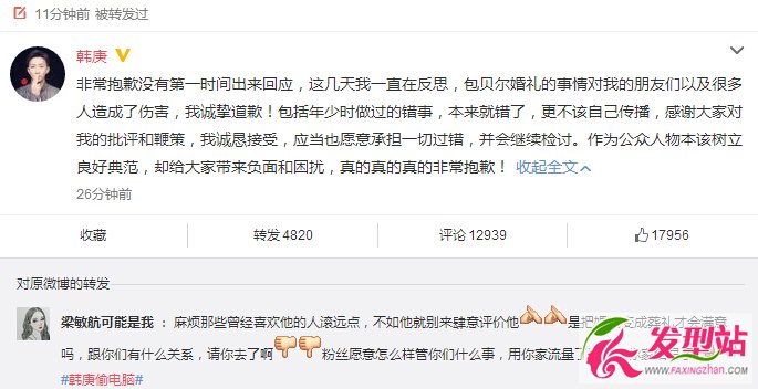 非常抱歉沒有第一時(shí)間出來回應(yīng),這幾天我一直在反思,包貝爾婚禮的事情對(duì)我的朋友們以及很多人造成了傷害,我誠摯道歉!包括年少時(shí)做過的錯(cuò)事,本來就錯(cuò)了,更不該自己傳播,感謝大家對(duì)我的批評(píng)和鞭策,我誠懇接受,應(yīng)當(dāng)也愿意承擔(dān)一切過錯(cuò),并會(huì)繼續(xù)檢討。作為公眾人物本該樹立良好典范,卻給大家?guī)碡?fù)面和困擾,真的真的真的非常抱歉!