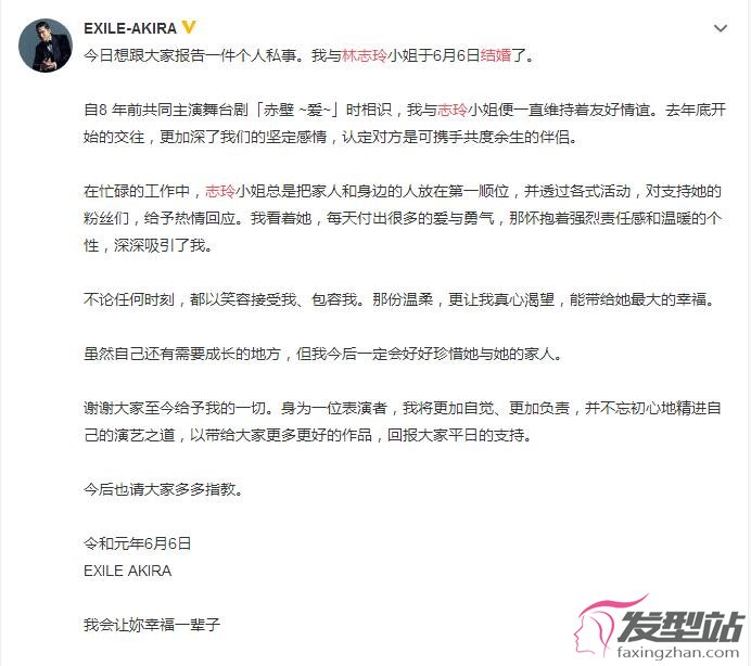 雖然網(wǎng)友也扒出了林志玲老公的身份,原來他是日本男子組合EXILE成員的EXILE-AKIRA,隨后林志玲老公也在微博上回顧了兩人的戀情,原來兩人在8年前就認(rèn)識了,在去年的時候開始交往,直到今年6月6日才公開結(jié)婚,EXILE-AKIRA還承諾會讓林志玲幸福一輩子。