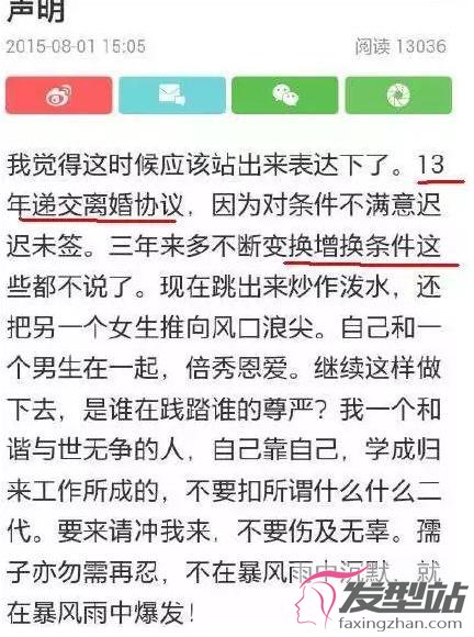 這時(shí)候,這位男主角不干了,馬上發(fā)了個(gè)聲明澄清了,說(shuō)和劉雨欣 13 年就離婚了,是劉雨欣說(shuō)些沒(méi)有用的,巴拉巴拉的 ……