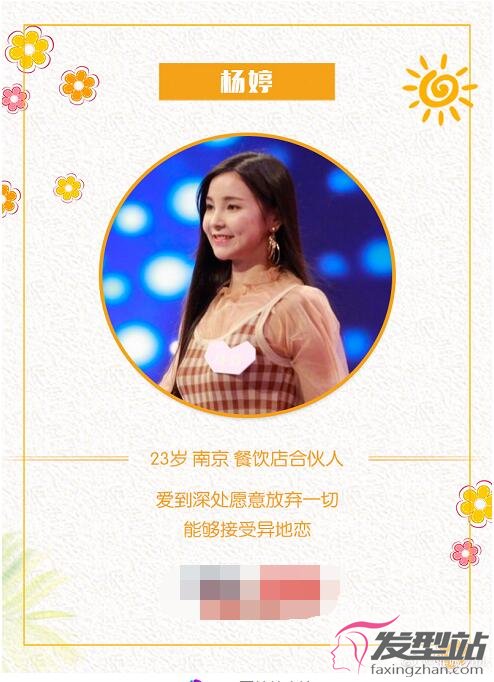非誠(chéng)勿擾女嘉賓楊婷是自南京,今年23歲的楊婷是一位餐飲店合伙人,通過(guò)楊婷的微博可以發(fā)現(xiàn)應(yīng)該是一家燒烤店,楊婷的愛(ài)情宣言是“愛(ài)到深處愿意放棄一切,能夠接受異地戀”?梢(jiàn)楊婷是一位很重感情的女生,愿意為自己喜歡的另一半付出一切。