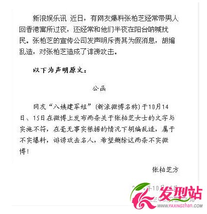 張柏芝的中文網(wǎng)官方微博,就網(wǎng)友指柏芝帶男人在港寓所過夜、半夜在陽臺(tái)吶喊擾民的兩條微博內(nèi)容,發(fā)出辟謠公開信,信中稱:近日,有網(wǎng)友爆料張柏芝經(jīng)常帶男人回香港寓所過夜,還經(jīng)常和他們半夜在陽臺(tái)吶喊擾民。張柏芝的宣傳公司發(fā)聲明斥責(zé)其為假消息,胡編亂造,對(duì)張柏芝造成了誹謗攻擊。希望刪除這兩條不實(shí)微博。