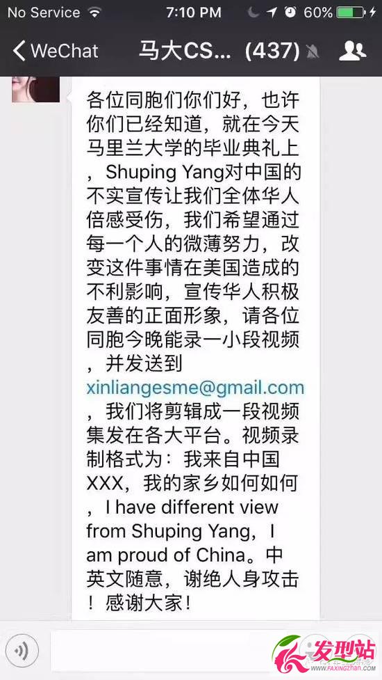 事發(fā)后,馬里蘭大學(xué)學(xué)生會(huì)也在微信群呼吁學(xué)生們采取行動(dòng),宣傳華人留學(xué)生正面的形象來(lái)消除Shuting Yang的演講所造成的不良影響: